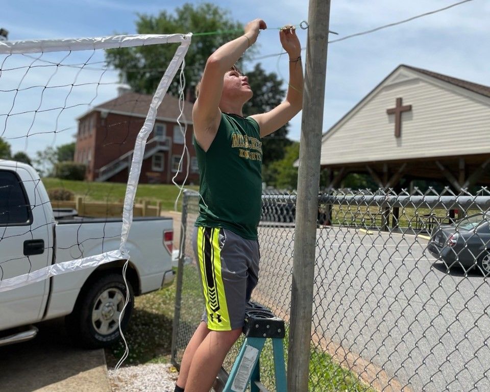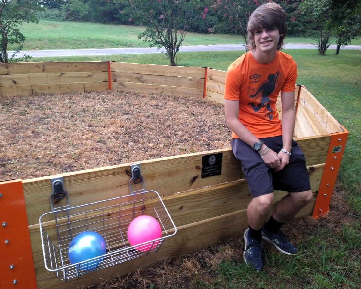 Gabriel Wright lead a group of scouts and adults in completing his Eagle Scout project of building a gaga pit and corn hole platforms at Balls Creek Campground.