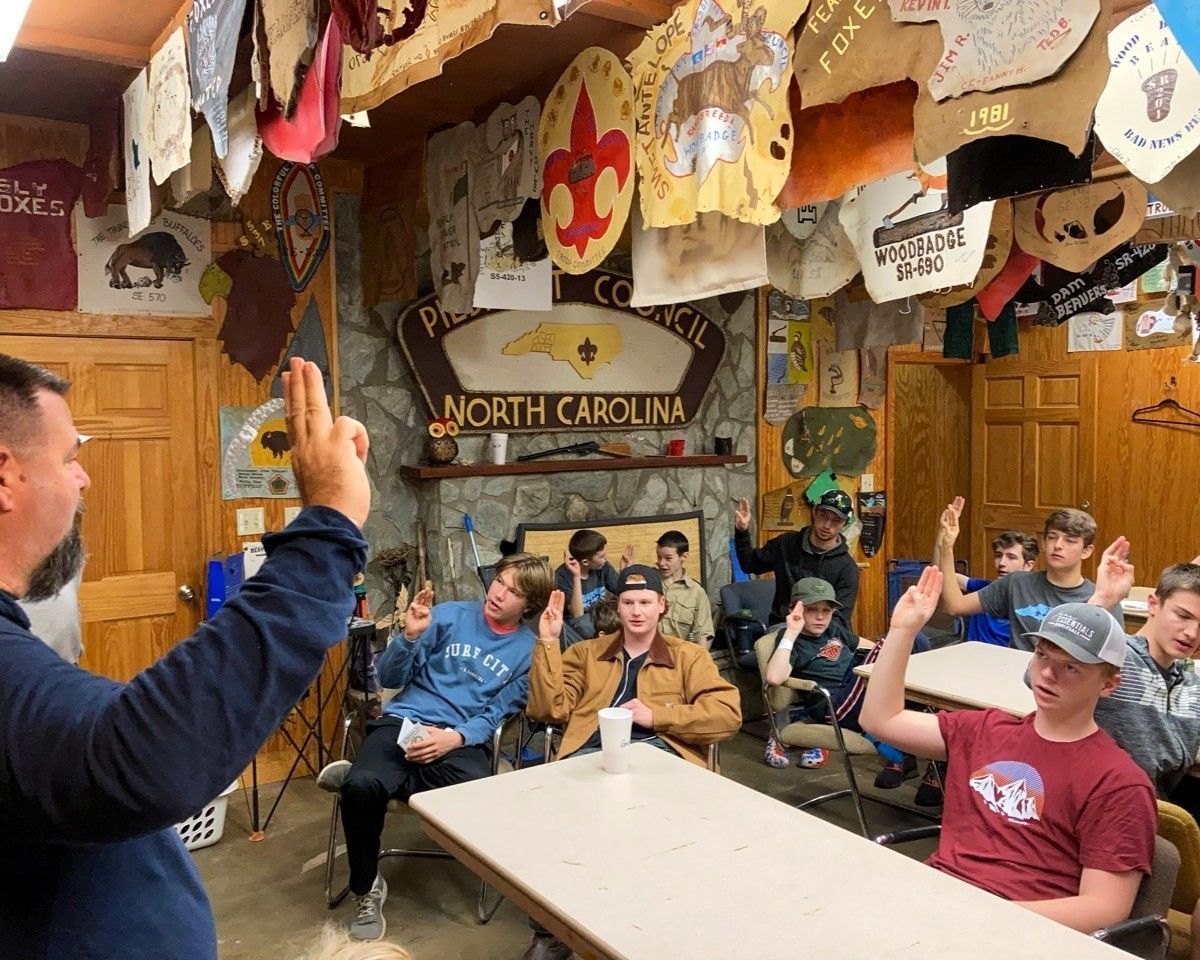 Troop 327 held it's annual cabin retreat at the Belk Lodge at Camp Bud Schiele. Besides outdoor fun, the Scouts worked on a new Eagle-required badge, Citizenship in Society, and the American Cultures merit badge. We also caught up on rank requirements and record keeping.