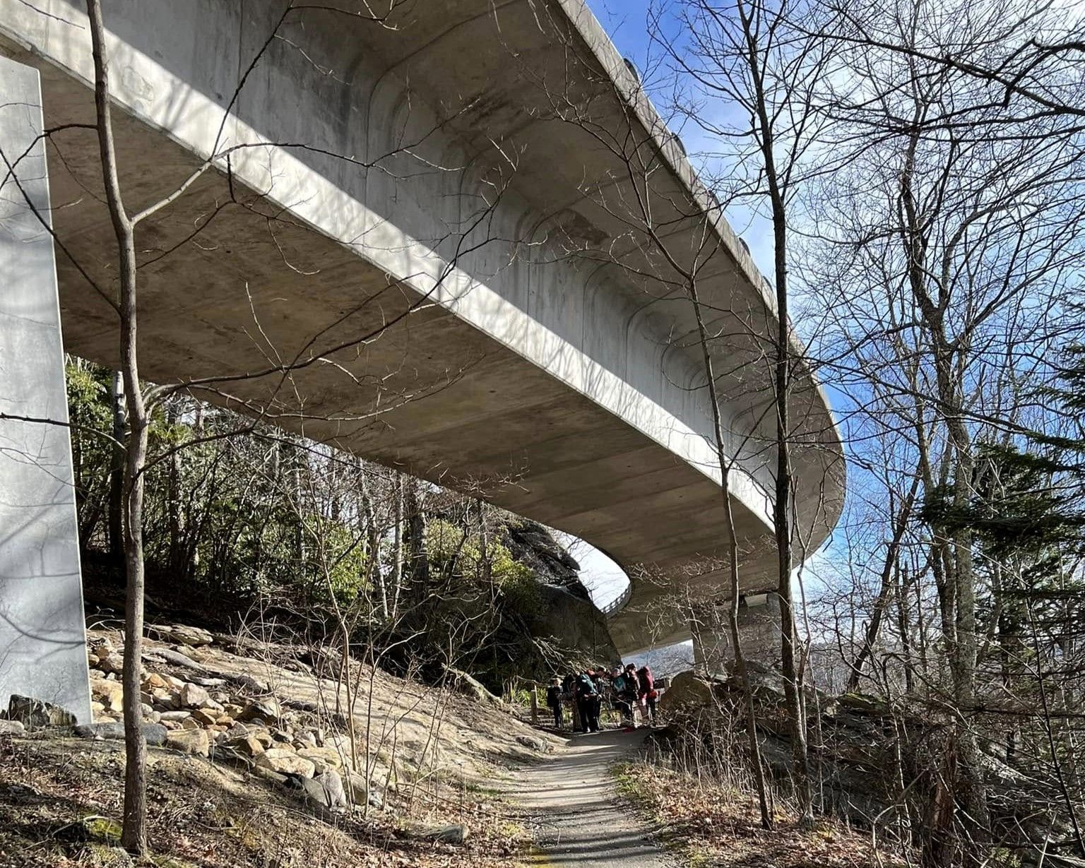 The Scouts and adults headed to Philmont had a shakedown hike on the Tanawha Trail. The trail passes underneath the Linn Cove Viaduct and parallels the Blue Ridge Parkway.