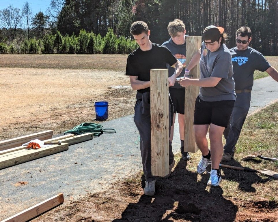 Safari Lane led a group of scouts, scouters, and other adults in creating a workout trail at Rehobeth United Methodith Church's Connor Recreation Center.