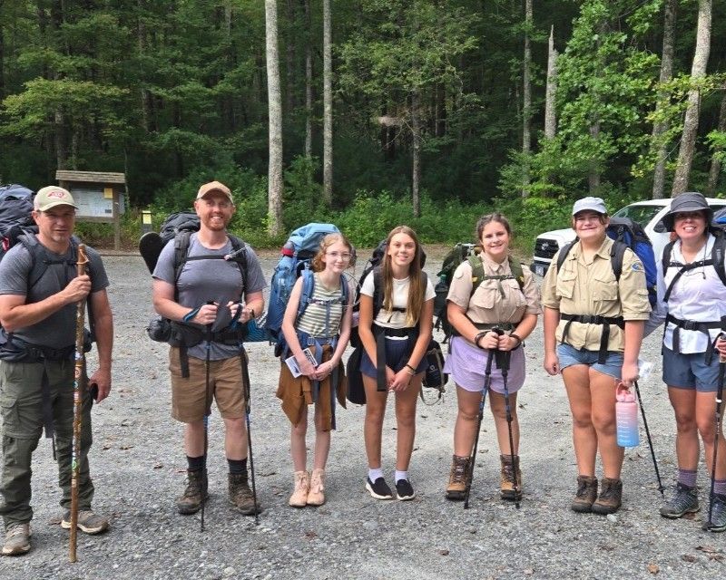 Scouts from troops 327 and 1327 went on a joint backpacking trek to Stone Mountain State Park. The trek was was nearly 7 miles over 24 hours with an elevation gain of nearly 800 feet. The scouts enjoyed backpacking meals and learned to use bear bags while on the hike.
