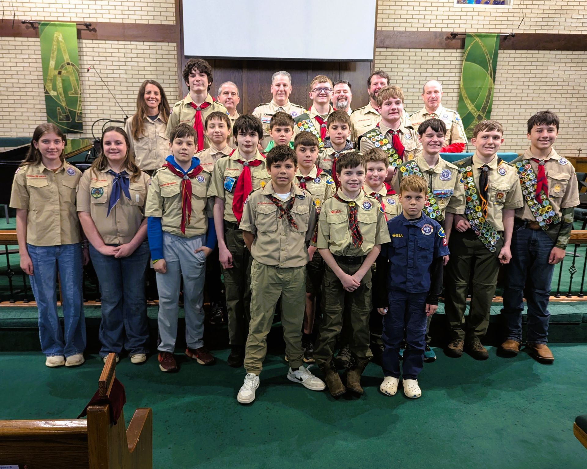 Troops 327 and 1327, and Pack 327 participated in Scout Sundat at Mt. Pleasant Methodist Church. Scouts provided the music and read scripture as part of the service. Scout Sunday is part of the celebration of Scouting's birthday in the United States.
